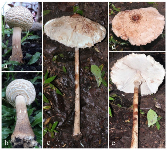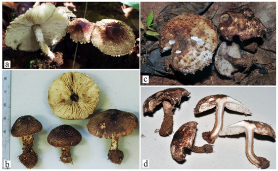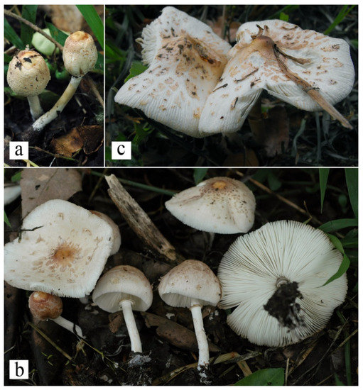 - Ge, W.; Yang, Z.L.; Vellinga, E.C. The genus Macrolepiota (Agaricaceae, Basidiomycota) in China. Fungal Divers. 2010, 45, 81–98. [Google Scholar] [CrossRef] [Green Version]
