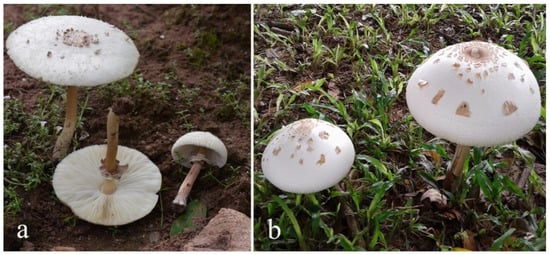 - Hussain, S.; Afshan, N.S.; Ahmad, H.; Sher, H.; Khalid, A.N. Xanthagaricus pakistanicus sp. nov. (Agaricaceae), the first report of the genus from Pakistan. Turk. J. Bot. 2018, 42, 123–133. [Google Scholar] [CrossRef]