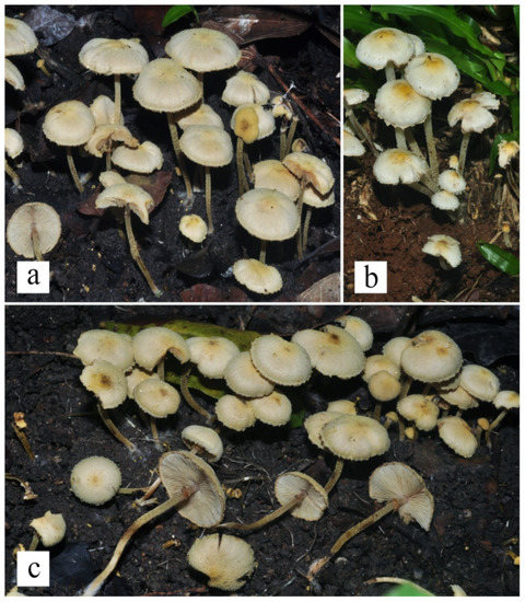 Material examined: Thailand, Chiang Mai Province, Mae Taeng District, Pha Deng Village: 19°07′13.7″ N; 98°43′52.9″ E, alt., 905 m, 6 July 2007, P. Sysouphanthong, PNG05 (MFLU 09-0005); ibidem, 12 July 2007, P. Sysouphanthong, PNG050 (MFLU 09-0051); ibidem, 25 July 2007, E. C. Vellinga, ecv3557; ibidem, 15 July 2007, E. C. Vellinga, ecv3622; Chiang Rai, Muang District, Pong Phra Bath Village, 21 July 2012, P. Sysouphanthong, 2012-6 (MFLU 12-1769).