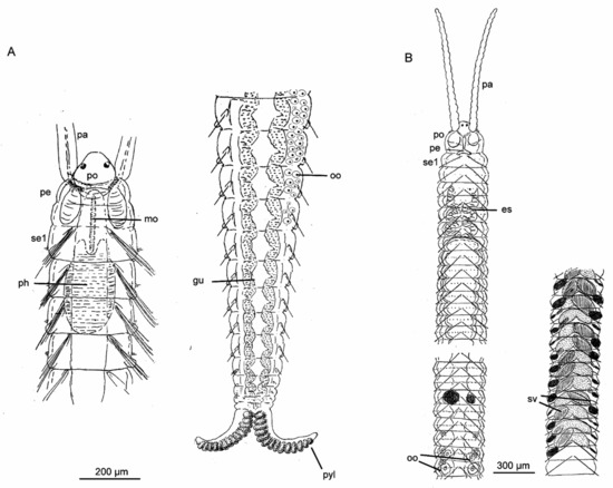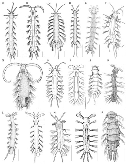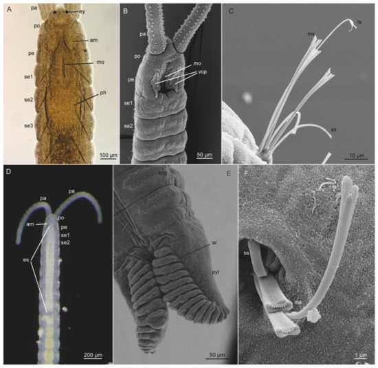 - Rouse, G.; Pleijel, F. Polychaetes; Oxford Univdersity Press: Oxford, UK, 2001. [Google Scholar]