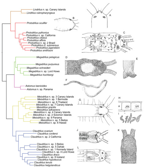 - Martínez, A.; Worsaae, K.; Purschke, G. Protodriloididae Purschke & Jouin, 1988. In Handbook of Zoology; Annelida; Purschke, G., Böggemann, M., Westheide, W., Eds.; De Gruyter: Berlin, Germany, 2020; Volume 3. [Google Scholar]