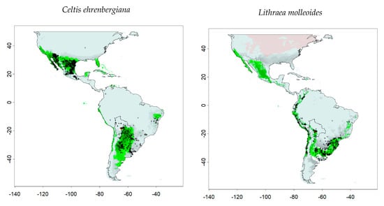 - Morin, X.; Thuiller, W. Comparing niche- and process-based models to reduce prediction uncertainty in species range shifts under climate change. Ecolology 2009, 90, 1301–1313. [Google Scholar] [CrossRef]