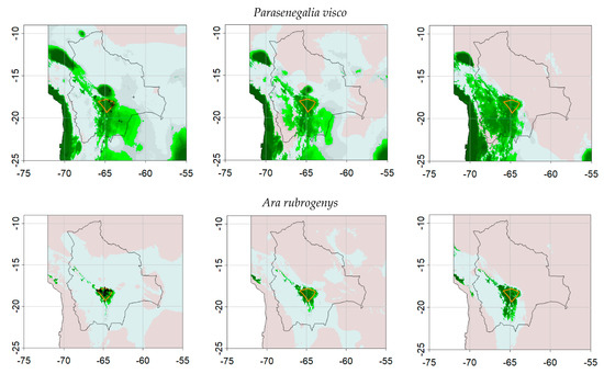 - Marini, M.Â.; Barbet-Massin, M.; Martinez, J.; Prestes, N.P.; Jiguet, F. Applying ecological niche modelling to plan conservation actions for the Red-spectacled Amazon (Amazona pretrei). Biol. Conserv. 2010, 143, 102–112. [Google Scholar] [CrossRef]