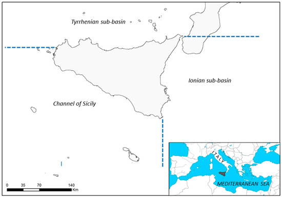 Sicily Island is the southernmost region of Italy, has a coastline that is 1652 km long, 20% of the Italian coastal length, and overlooks three Mediterranean sub-basins (the Tyrrhenian, the Ionian Sea, the Channel of Sicily; Figure 1), each with peculiar oceanographical and ecological features.