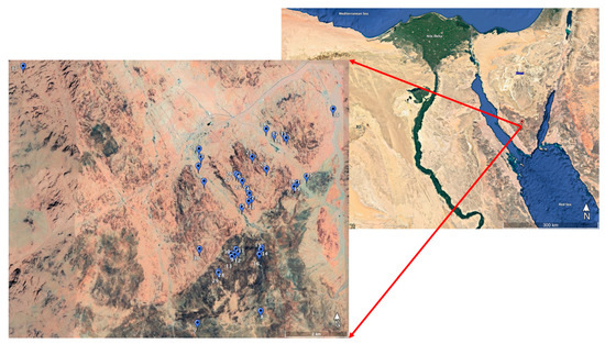 The SKP was established in 1996 by the Egyptian Environmental Affairs Agency (EEAA) to protect the entire massif of the high mountains in South Sinai [6]. This massif is situated in the southern part of Sinai and is a part of the upper Sinai massif (33°55′ to 34°30′ E and 28°30′ to 28°35′ N). The natural conditions and geographical position of Sinai, as a bridge between Asia and Africa, have made it a distinctive biological region with its own characteristic flora and fauna (Figure 1). Floristically, it belongs to the Saharo-Arabian phytogeographical region (a subcategory of the Irano-Turanian chorotype). Its surprising biodiversity includes a high proportion of endemic and rare plants [12].