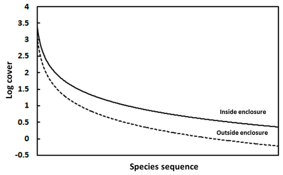 Logarithmic trend line of the species cover sequence inside and outside the enclosures.