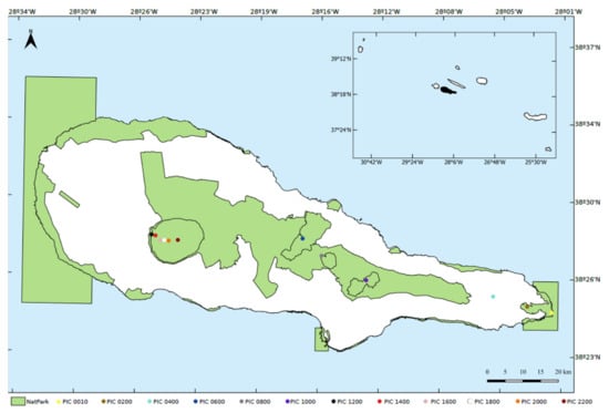 Pico Island is set in the central group of the archipelago of the Azores (Portugal) in the North Atlantic Ocean, between the coordinates 38°33′57″ and 38°33′44″ N and 28°01′39″ and 28°32′33″ W []. Pico Island is the second-largest (445 km2), the highest (2350 m a.s.l.) and the youngest (0.27 MY) island of the Azores [].