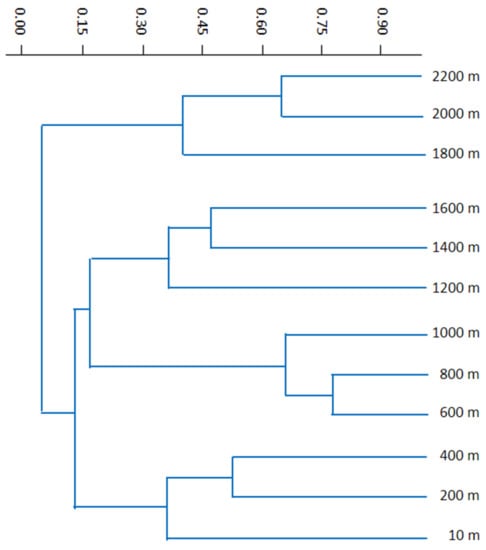 Species composition similarity was also investigated using cluster analysis, both for elevation and the substrate. Clusters were made with PAST software [], using Bray–Curtis ordination and the unweighted pair group average (UPGMA) algorithm. In this method, the sites or substrates are joined based on the average distance between all members in the two groups.