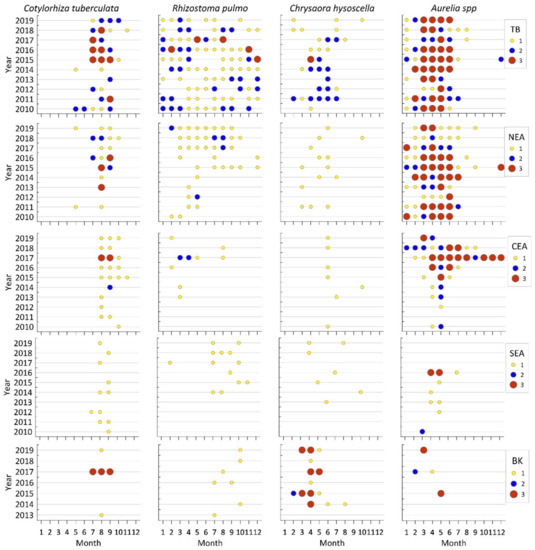 - Isinibilir, M.; Yilmaz, I.N.; Demirel, N. New records of the jellyfish species in the Marmara Sea. Ital. J. Zool. 2015, 82, 425–429. [Google Scholar] [CrossRef][Green Version]