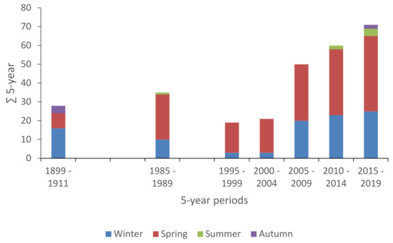 - Von Szüts, A. Biologische Beobachtungen ewahrend der ersten und zweiten terminfahrt des Ungarischen Adriavereins an “Najade” im Oktober 1913 und im April-Mai 1914. Zool. Anz. 1915, 45, 432–442. [Google Scholar]