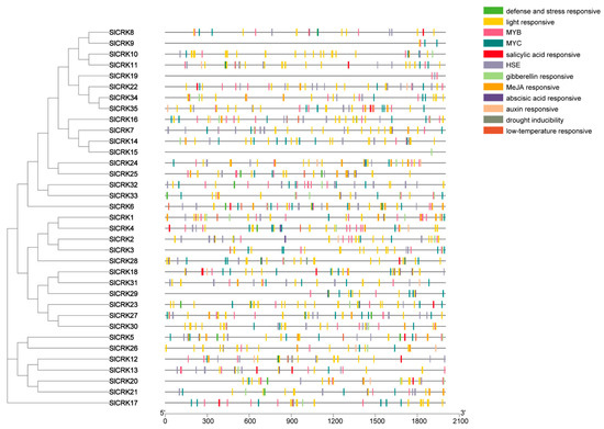 Cis-regulatory elements in SlCRK gene promoter regions, containing the upstream 2 kb region of SlCRK coding sequence.