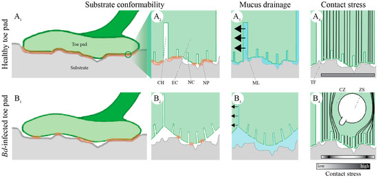 3.2. Bd-Induced Disruptions of Tree Frog Attachment