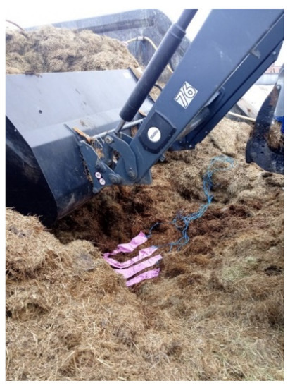 The farm-scale patch-reactor samples were set inside polyester bags that were set into the bottom, middle and on top of the biomasses. (Photo: Marjaana Hassani).