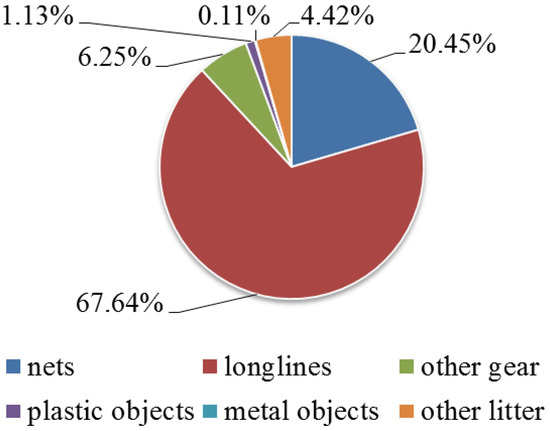 Marine litter may favor hitch-hiking organisms and the spreading of alien species [36], as well as producing toxic effects in marine animals [37]. In particular, plastic litter lost in the marine environment can fragmentize into smaller pieces, becoming microplastics (<5 mm diameter) [23] and they can then be ingested, causing problems both for feeding and digestive activities and favoring the spread of xenobiotics [38]. The litter ingestion by fishes also has potential consequences for human health [39,40,41]. Overall, the accumulation of lost fishing gear and litter is considered among the major causes of marine environment degradation, and for this reason, several studies are trying to characterize and assess their impacts on marine ecosystems [32,42,43,44,45,46].