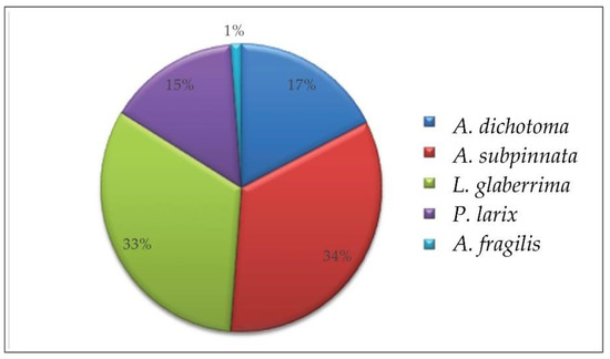 This study shows the occurrence of black-coral communities composed of A. subpinnata (34%), L. glaberrima (33%), A. dichotoma (17%), P. larix (15%), and A. fragilis (1%) in 59 Italian sites (Figure 2), which are reported from the Ligurian, Tuscany, Latium, Campanian, Apulian, Calabrian, Sicily, and Sardinia regions (Table 1).