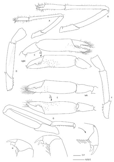In (Figure 1, Figure 2, Figure 3 and Figure 4). Spongicola goyi Saito & Komai, 2008 [12]: 107.—Goy 2010 [3]: 224.—De Grave & Fransen 2011 [42]: 251.—Goy 2015 [13]: 307.
