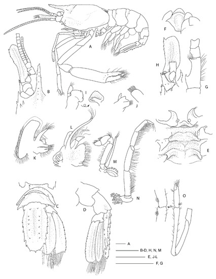 - Hansen, H.J. Crustacea Malacostraca, I. Dan. Ingolf Exped. 1908, 3, 1–120. [Google Scholar]