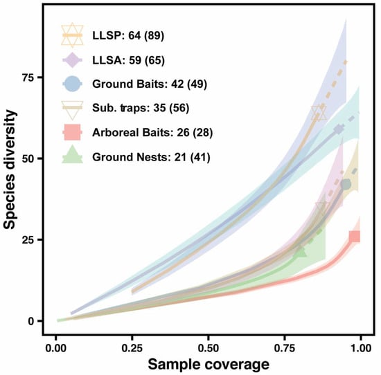- Longino, J.T.; Coddington, J.; Colwell, R.K. The ant fauna of a tropical rain forest: Estimating species richness three different ways. Ecology 2002, 83, 689–702. [Google Scholar] [CrossRef]