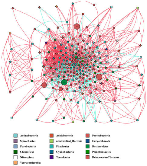 - Ma, B.; Wang, H.; Dsouza, M.; Lou, J.; He, Y.; Dai, Z.; Brookes, P.C.; Xu, J.; Gilbert, J.A. Geographic patterns of co-occurrence network topological features for soil microbiota at continental scale in eastern China. ISME J. 2016, 10, 1891–1901. [Google Scholar] [CrossRef]