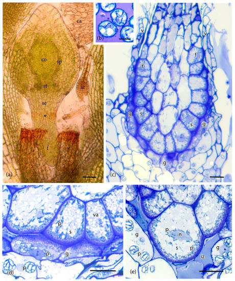 - Johnson, G.P. Early Embryology of Ceratopteris Richardii and Immunocytochemestry of Placental Transfer Cell Wall Ingrowths. Master’s Thesis, Southern Illinois University, Carbondale, IL, USA, 2008. [Google Scholar]