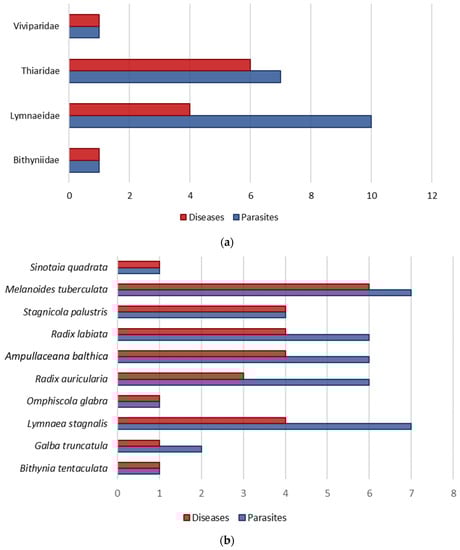 Several snail and slug species are also important from a medical or veterinary point of view, since they can act as first hosts of several trematode worms or being transmitters of nematodes or other parasites [,,]. Parasitic diseases cause serious public health problems worldwide and according to the World Health Organization (WHO) and the Institute for Health Metrics and Evaluation (IHME), the number of worldwide deaths from infectious parasitic diseases exceeded one and a half million only in 2017 [].