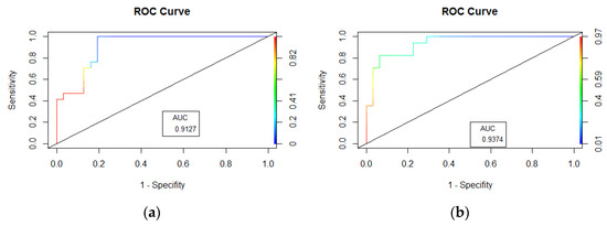 Area under ROC curve: (a). Artificial Neural Network (ANN) and (b) Random Forest (RF) of P. arinasae.