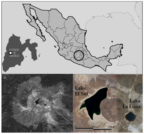 - Oseguera, L.A.; Alcocer, J.; Escobar, E. Macroinvertebrados bentónicos de dos lagos tropicales de alta montaña en el volcán Nevado de Toluca, en el centro de México. Hidrobiológica 2016, 26, 419–432. [Google Scholar]