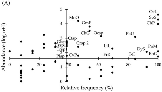 - Cantonati, M.; Zorza, R.; Bertoli, M.; Pastorino, P.; Salvi, G.; Platania, G.; Prearo, M.; Pizzul, E. Recent and subfossil assemblages as indicator of environmental change (including fish introduction in a high-mountain lake). Ecol. Indic. 2021, 125, 107603. [Google Scholar] [CrossRef]