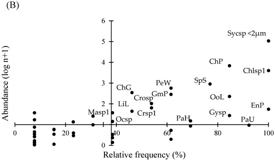 | Bacillariophyta (Coscinodiscophycea, Mediophyceae, and Bacillariophyceae) | 327 | 262 | 32 | 27 | - | 5 | 15 | 15 | 4 | 32 | 6 |