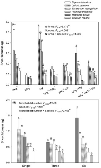 - Grassein, F.; Lemauviel-Lavenant, S.; Lavorel, S.; Bahn, M.; Bardgett, R.D.; Desclos-Theveniau, M.; Laine, P. Relationships Between Functional Traits and Inorganic Nitrogen Acquisition Among Eight Contrasting European Grass Species. Ann. Bot. 2015, 115, 107–115. [Google Scholar] [CrossRef]