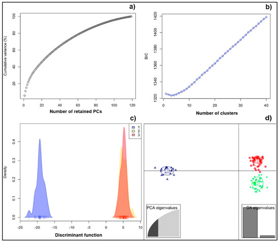 - Jombart, T.; Devillard, S.; Balloux, F. Discriminant Analysis of Principal Components: A New Method for the Analysis of Genetically Structured Populations. BMC Genet. 2010, 11, 94. [Google Scholar] [CrossRef]