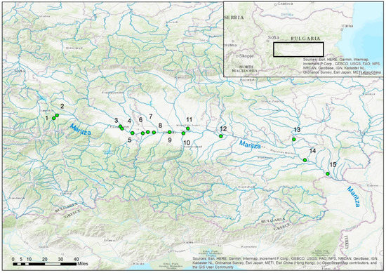 Location of the studied sites along the Maritsa River.