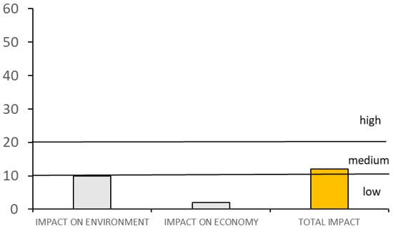 As threshold values between medium and high impact levels, we used the limits proposed by []: impact scores of 10–19 are the limits for medium impact and scores of 20+ for high impact.