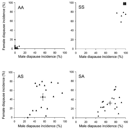 - Male and female genotypes are equally important in the determination of the pre-adult development time and the incidence of winter adult diapause;