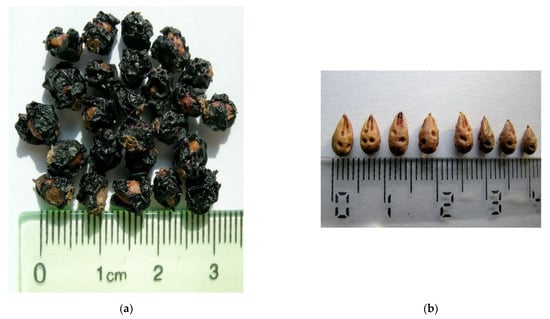 N. schoberi fruits (a) and seeds (b).