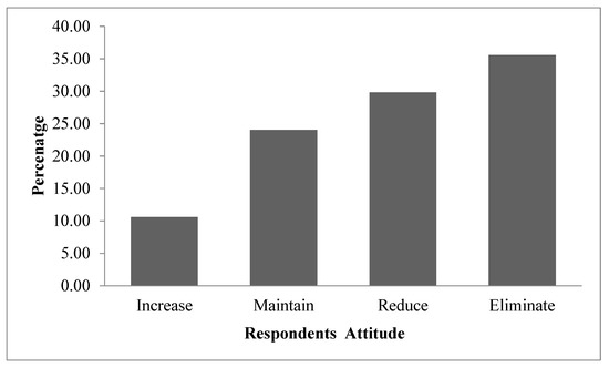 Human attitude towards grey wolf has been predominantly negative with 35.58% of the total respondents wishing complete eradication of grey wolf numbers. Nearly 30% and 24% of the respondents either supported reduction of wolf numbers or maintaining the current status (Figure 4). Only a little over 10% of respondents supported an increase of the grey wolf in the region, thereby highlighting the general negative attitude of respondents towards the grey wolf in the region.