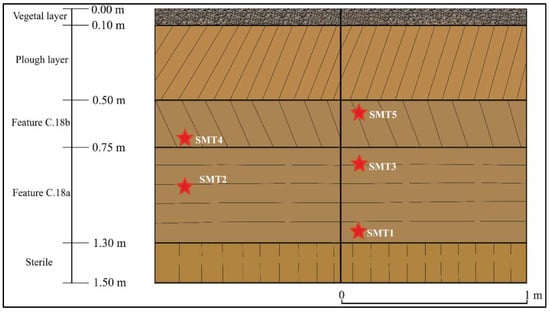 Location of the sediment samples (SMT 1–5) in the cultural layers.