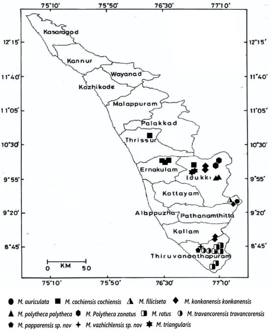 Distribution: The species is near endemic to Kerala and has been reported in Dist. Thiruvananthapuram: Bonaccord (Bonacaud, Bonakkad), Chimungi (Chemmunji), Coorloon, Mukkunni Reserve Forest, Trivandrum (Thiruvananthapuram) [8].