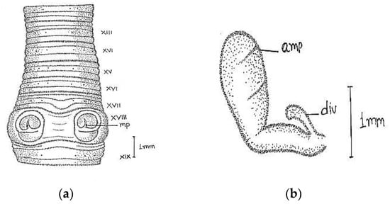 - Michaelsen, W. The oligochaete fauna of the Indian-Ceylonian region. Repr. Verh. Nat. Sci. Assoc. Hambg. 1910, 19, 1–108. [Google Scholar]