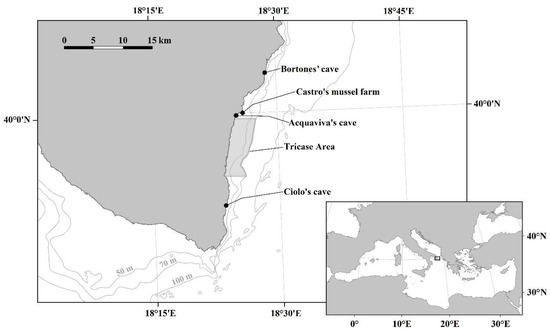 Micaroni, V.; Strano, F.; Crocetta, F.; Di Franco, D.; Piraino, S.; Gravili, C.; Rindi, F.; Bertolino, M.; Costa, G.; Langeneck, J.; et al. Project “Biodiversity MARE Tricase”: A Species Inventory of the Coastal Area of Southeastern Salento (Ionian Sea, Italy). Diversity 2022, 14, 904. https://doi.org/10.3390/d14110904