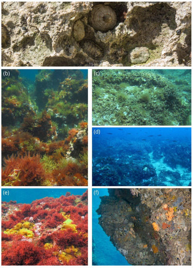 - Giacobbe, S.; Renda, W. Mollusc diversity in Capo d’Armi (Central Mediterranean Sea) subtidal cliff: A first, tardy, report. Biodivers. J. 2018, 9, 25–34. [Google Scholar]