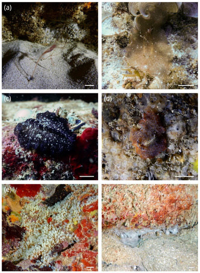 - Pansini, M. Fauna d’Italia: Porifera; 1. Calcarea, Demospongiae (Partim), Hexactinellida, Homoscleromorpha; Calderini: Bologna, Italy, 2011. [Google Scholar]