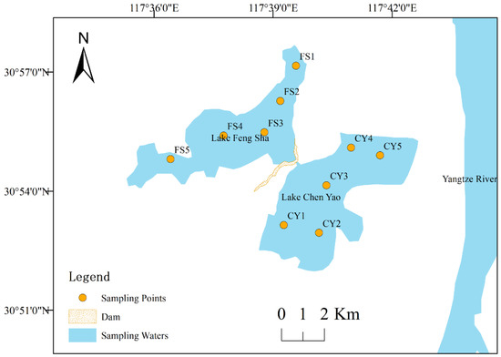 Figure 1. Distribution of sampling points in Lake Chen Yao and Lake Feng Sha study area.