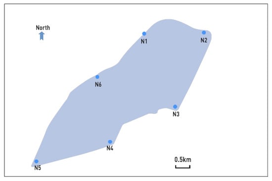 Distribution of sampling sites (N1–N6) in Nanhai Lake.