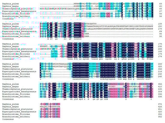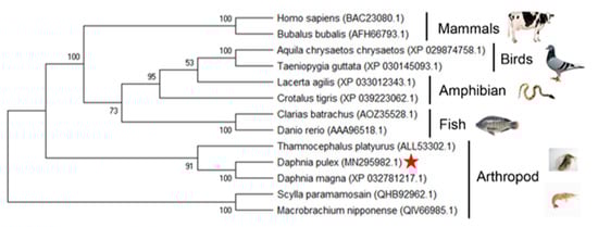 - Wu, D.; Liu, Z.; Cai, M.; Jiao, Y.; Li, Y.; Chen, Q.; Zhao, Y. Molecular characterisation of cytochrome P450 enzymes in waterflea (Daphnia pulex) and their expression regulation by polystyrene nanoplastics. Aquat. Toxicol. 2019, 217, 105350. [Google Scholar] [CrossRef] [PubMed]