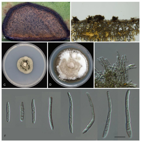 - Yadav, S.; Verma, S.K.; Singh, V.K.; Singh, R.; Singh, A.; Kumar, S. Morphology and phylogeny of a new species, Pseudocercospora haldinae (Mycosphaerellaceae) on Haldina cordifolia from India. Phytotaxa 2021, 501, 281–292. [Google Scholar] [CrossRef]