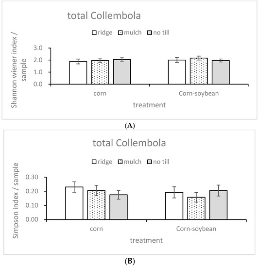- Brennan, A.; Fortune, T.; Bolger, T. Collembola abundances and assemblage structures in conventionally tilled and conservation tillage arable systems. Pedobiologia 2006, 50, 135–145. [Google Scholar] [CrossRef]