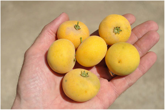 Incidentally, C. lanatus is the common watermelon that is available in home gardens and the marketplace worldwide, and it is also native to South Africa [26]. The flesh of the watermelon is comprised of a high sugar content, but it also has a rich phytochemical profile, particularly of terpenoid origin. The most common variety of C. lanatus that is eaten in the Kalahari has a yellow flesh, unlike the variety that is popularized over the world, which has a reddish pink flesh [25].