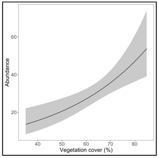 The effect of vegetation cover on abundance. In grey are the confidence intervals.