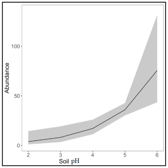 The effect of soil pH on abundance. In grey are the confidence intervals.